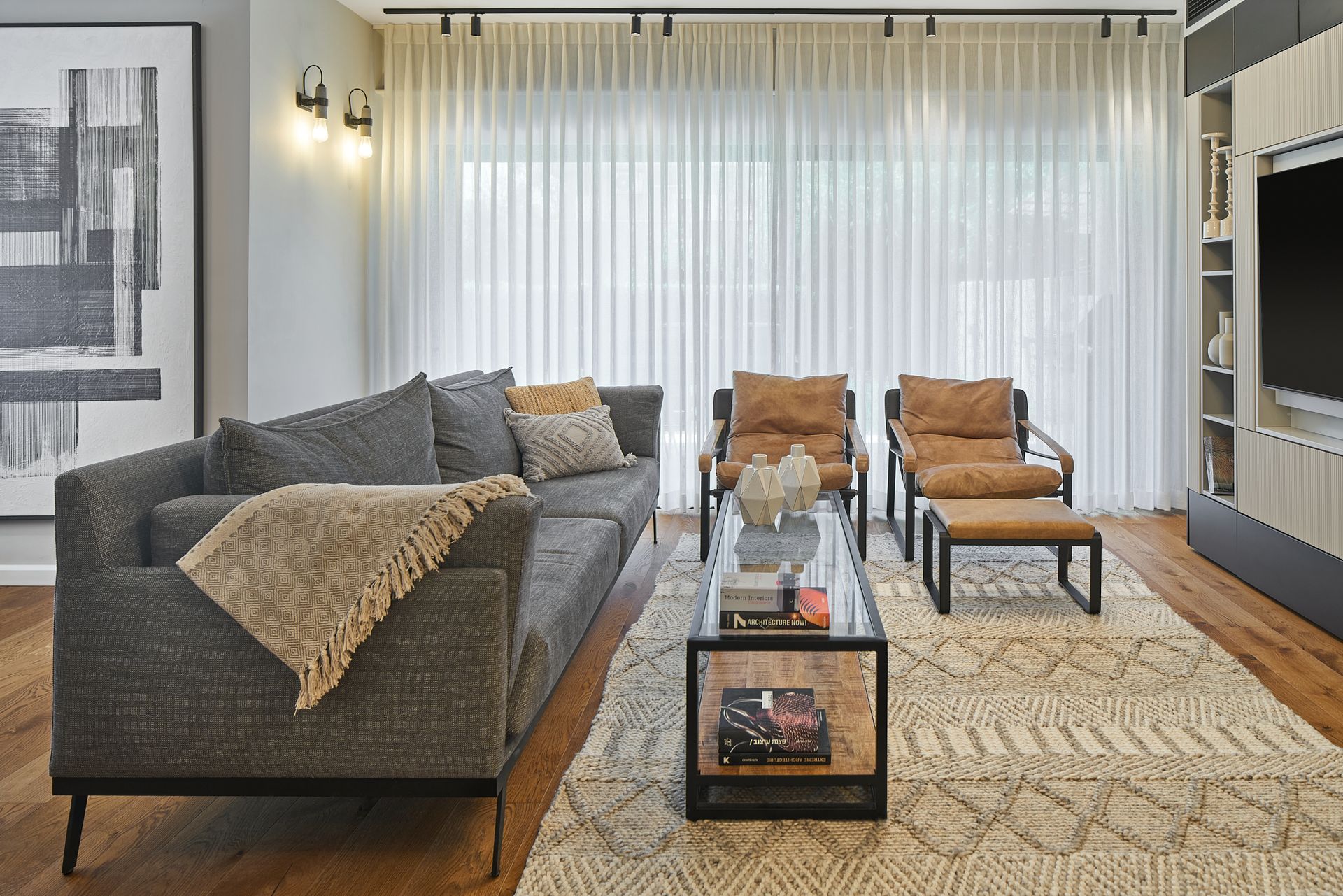 פרגולה מאסיבית מבטון שהחשיכה מאד את הקומה נוסרה והוסרה וכך התאפשרה כניסה של אור טיבעי וישיבה יותר נעימה וקלילה במרפסת היציאה מהסלון.