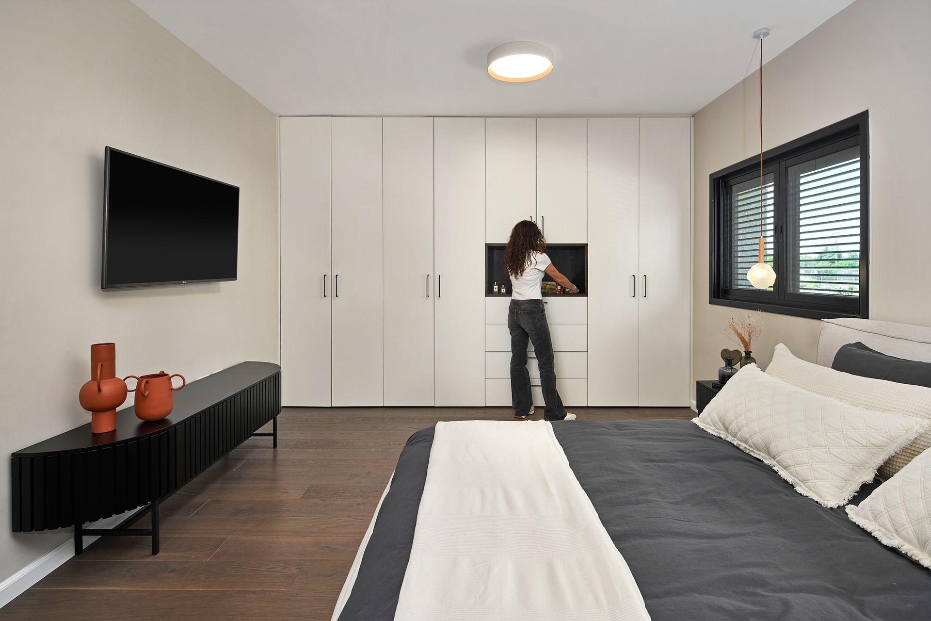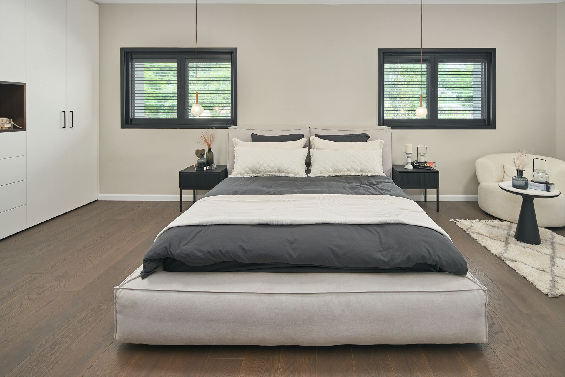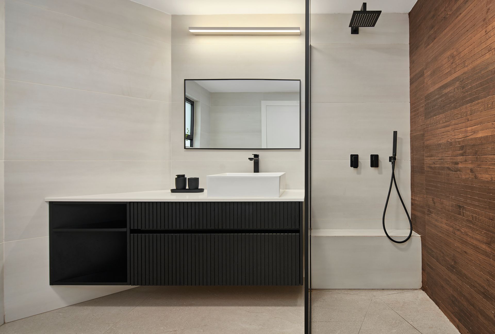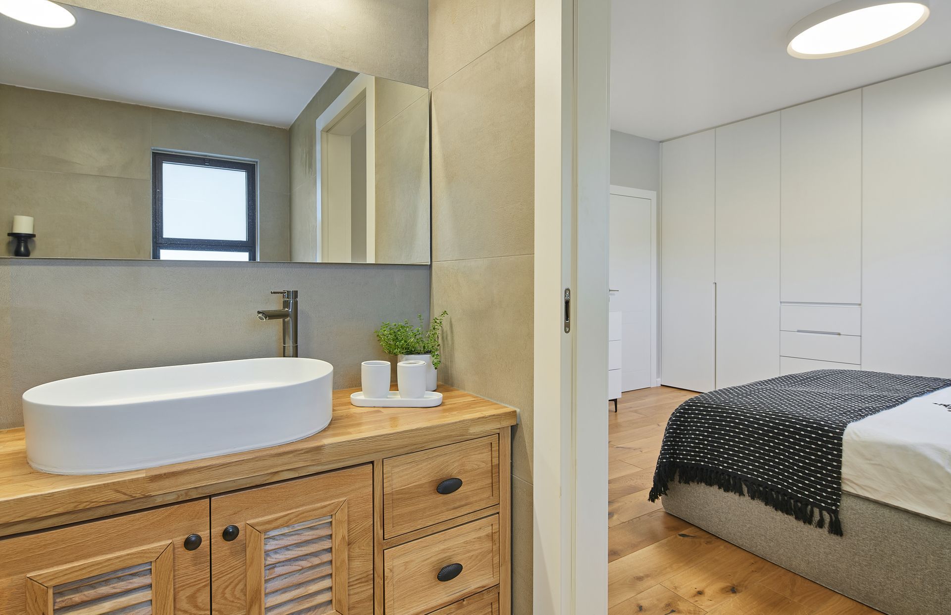 בקומה הראשונה יצרנו שני חדרי מאסטר עם מקלחות צמודות וחדר עבודה/משרד משותף.