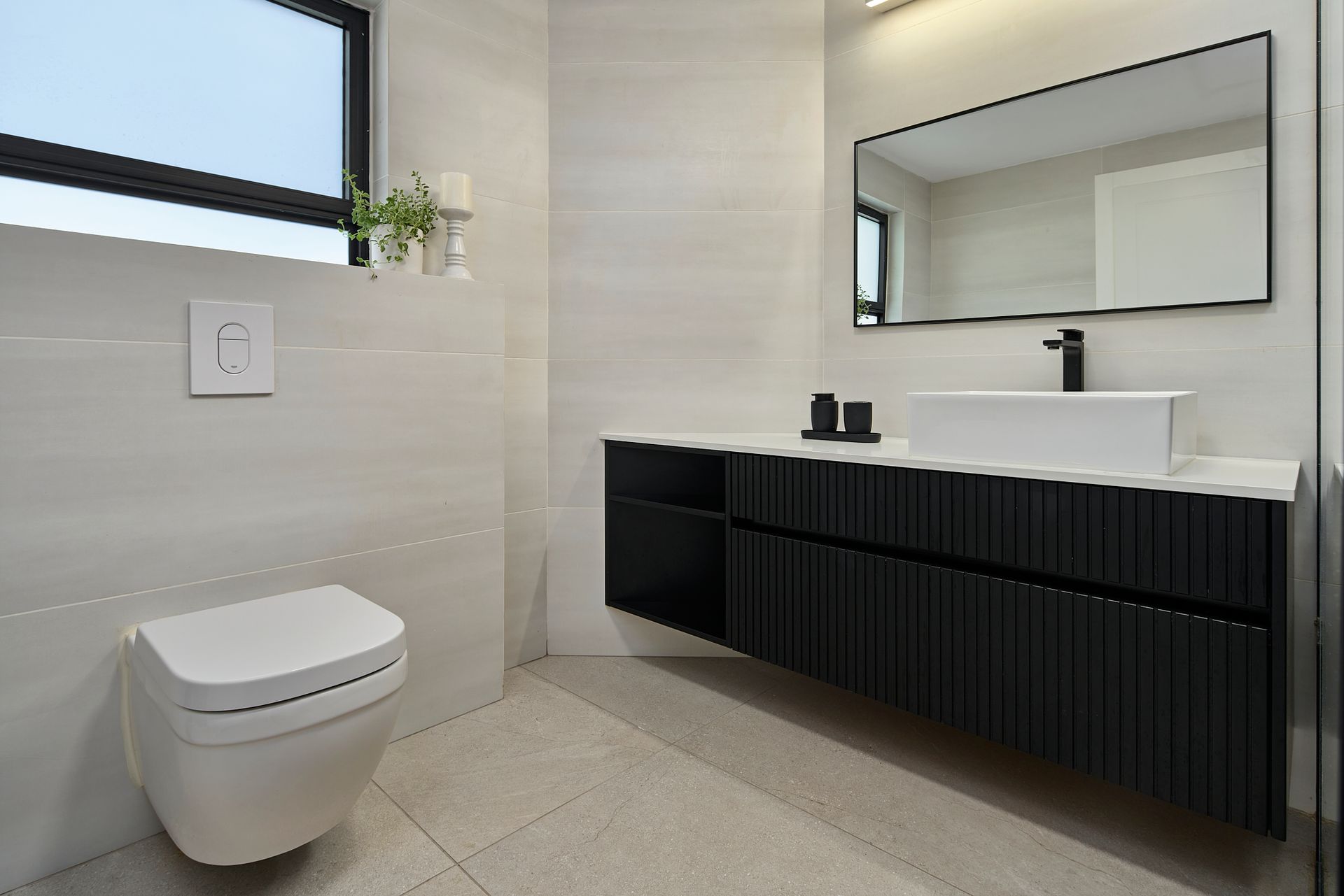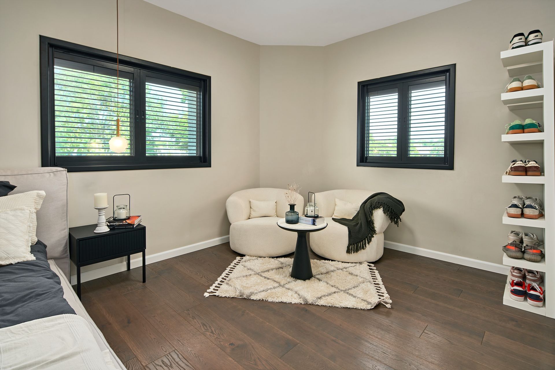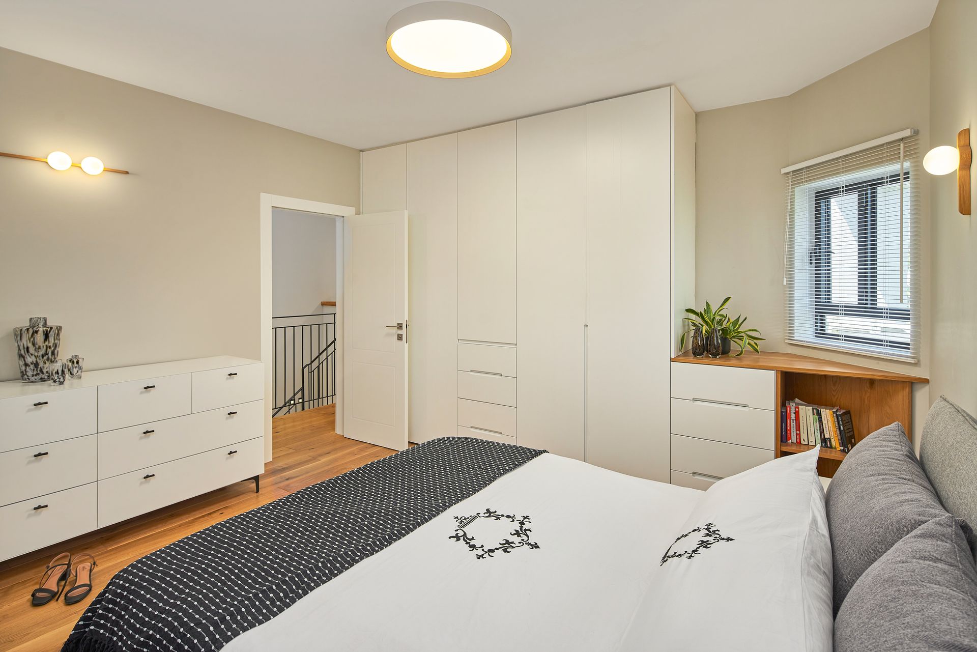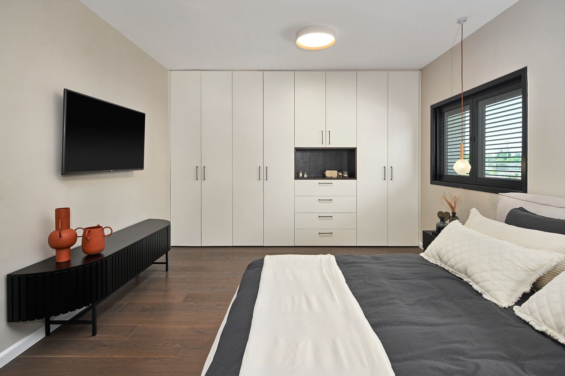 בקומה הראשונה יצרנו שני חדרי מאסטר עם מקלחות צמודות וחדר עבודה/משרד משותף.