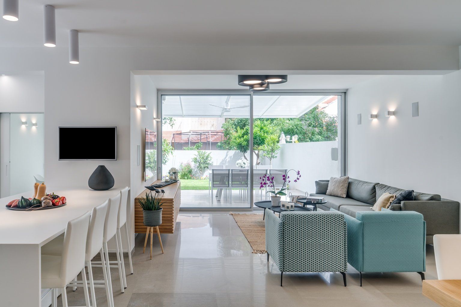 נפתחו חלונות גדולים המאירים את החלל ומחברים אותו עם החצר שעוטפת את הבית.